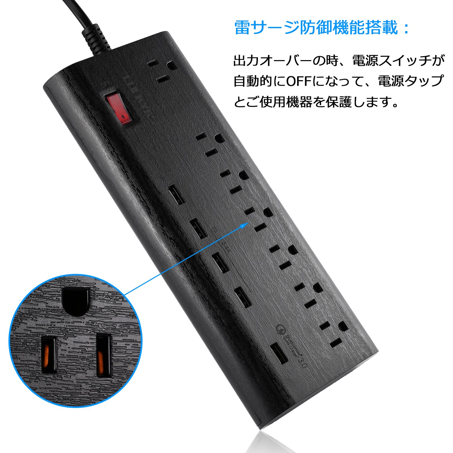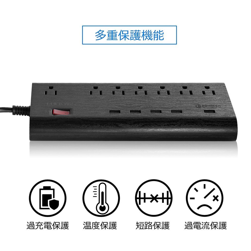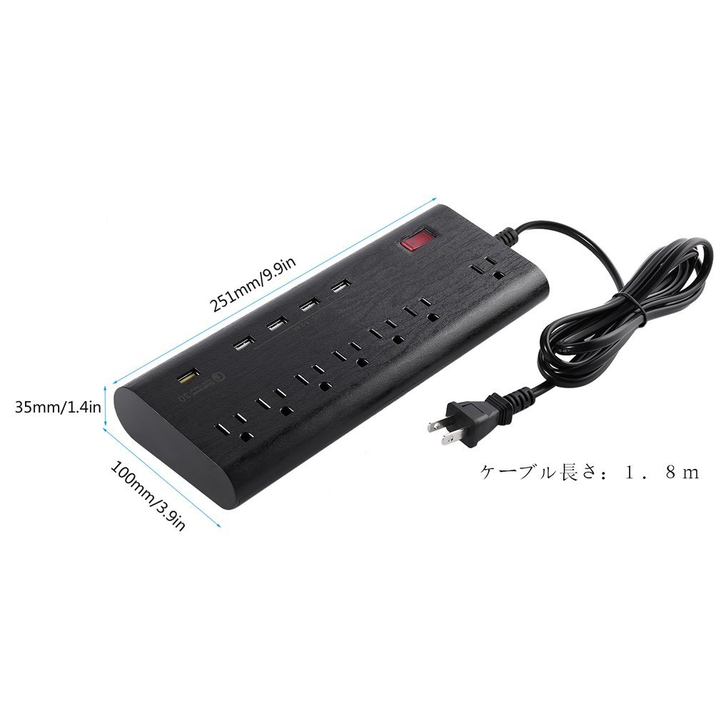 1.8 m 6 mouth power cord with surge protector Easy to carry, it can be installed on the desk.