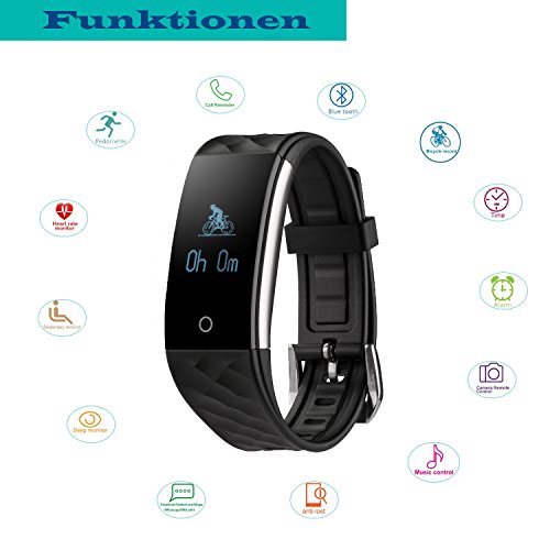 Typische Funktionen: 12/24 Stunden-Uhr, Datum& Woche Anzeige, Einschlafzeit& Schlafqualitat- Anzeige, Power-Anzeige.