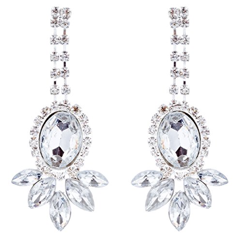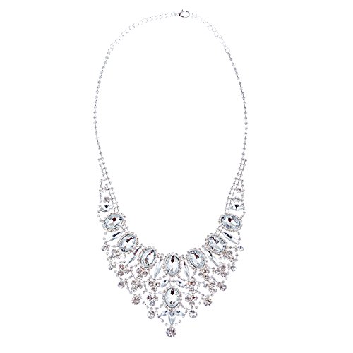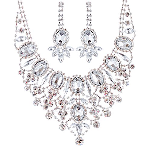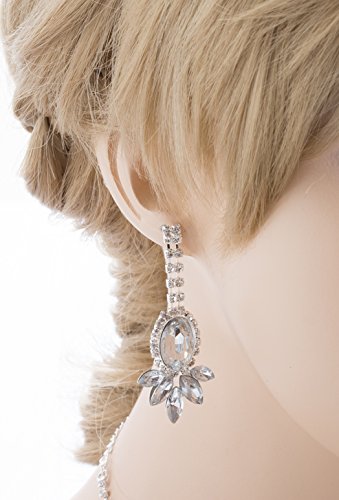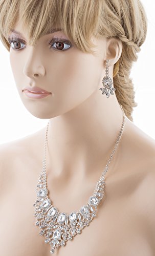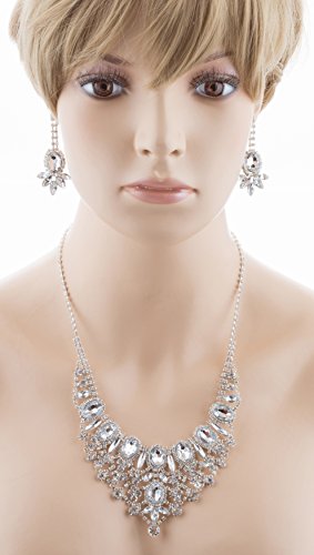 Sparkling and shining, this necklace features dazzling clear rhinestones in beautiful chic design. This accessory would make a beautiful addition for weddings, proms, homecomings or any formal affair! The necklace has a lobster claw closure. Earrings have post back closures for pierced ears.