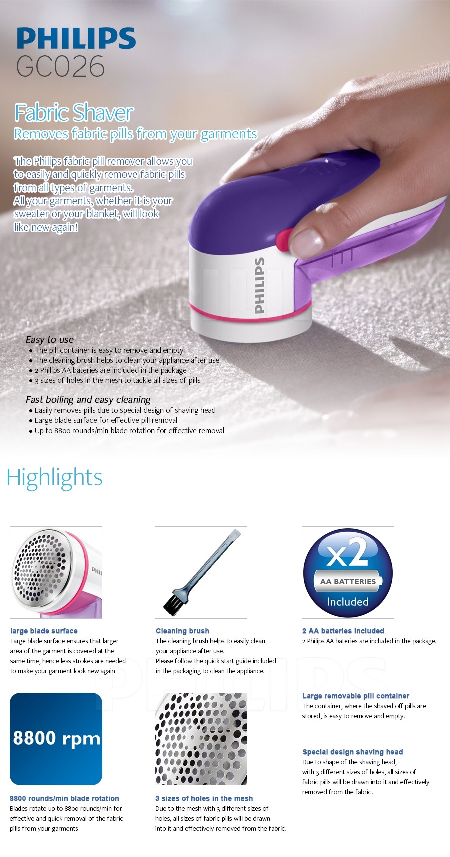 The Philips fabric pill remover allows you to easily and quickly remove fabric pills from all types
