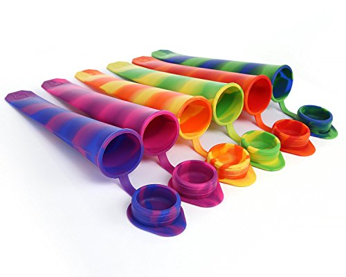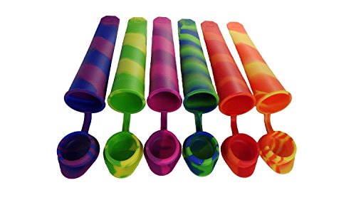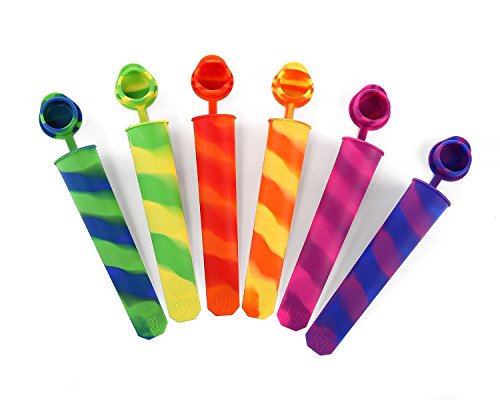 SILICONE SWIRL Set of 6 -- Reusable Silicone Ice Pop Molds, Popsicle and Ice Pop Maker with Attached Lids -- BPA Free / FDA Approved