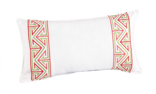 Trina Turk Trellis Border Embroidered Decorative Pillow, 20 by 10-Inch, Coral