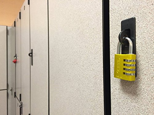 -. Feature : Resettable code / Available in Yellow, Orange, Red, Green, Blue, Black / Simplistic design makes it one of the easiest resettable combination locks to use on the market today