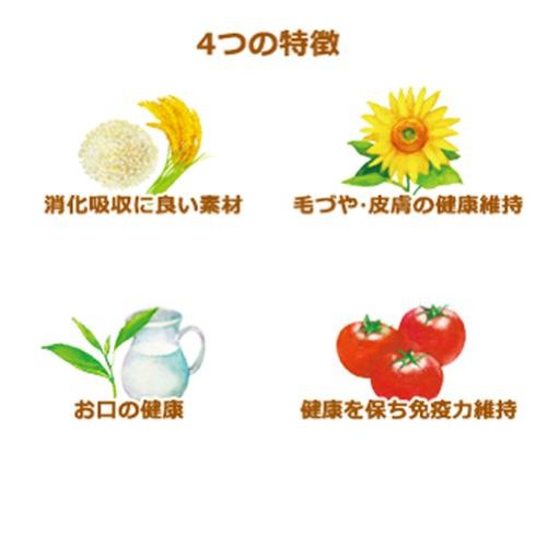 素材構成:タンパク質23.0%以上、脂質11.0%以上、粗繊維5.0%以下、灰分8.0%以下、水分10.5%以下