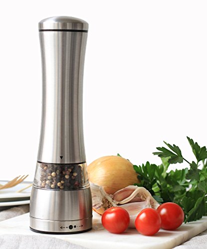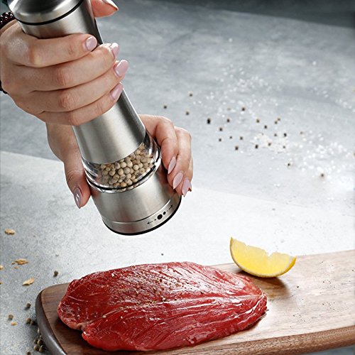 Manual operation and no batteries required. Simply turn the top section to mill salt or grind peppercorn.