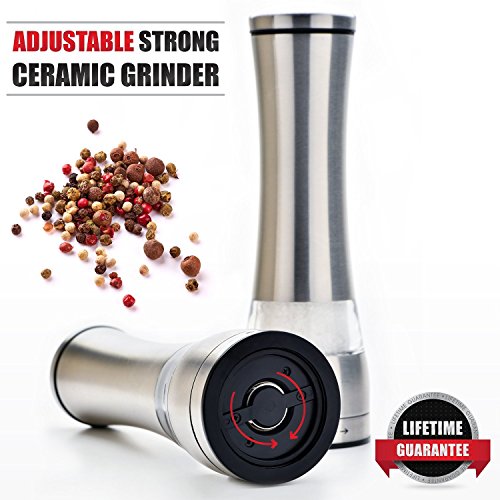 Henglian Pepper Mill, Adjustable Manual Stainless Steel Salt and Pepper Grinder
