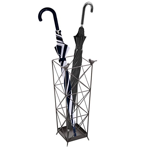 -. Feature : A convenient umbrella holder made of metal with a bronze-tone finish and metal birds on the top front corners. / The crossbar design that makes up the walls provides a sturdy storage space for your umbrellas, canes or walking sticks. / Gives your family members and guests a place to stash their umbrellas in your entryway or foyer. / **Official MyGift® product.** / Approximate Dimensions (in inches): 7.75 W X 19 H X 6 D.