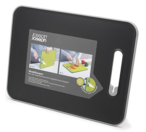Joseph Joseph Chopping Board with Integrated Knife Sharpener, Large, Slice and Sharpen, Black