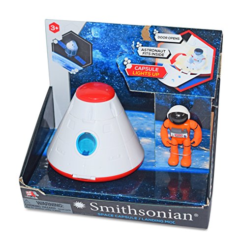 -. Binding : Toy -. Brand : Smithsonian -. EAN : 0615266631006 -. Feature : Space capsules allows astronauts to ""park"" somewhere in space / Space capsules are small, and there is not a lot of room for the astronauts to move around inside / Space capsules have Radios and computers, so the astronauts can keep in touch with earth. They also have cameras and windows so the astronauts can see outside the Capsule / 2 x AG13 batteries included / Contents: 1 x space Capsule, 1 x astronaut -. Label : Fun Creation Inc. dba National Products Ltd (Drop Ship Ordering Code) -. Manufacturer : Fun Creation Inc. dba National Products Ltd (Drop Ship Ordering Code) -. Model : 63100MB -. MPN : 63100MB -. NumberOfItems : 2 -. PackageQuantity : 1 -. PartNumber : 63100MB -. ProductGroup : Toy -. ProductTypeName : TOYS_AND_GAMES -. Publisher : Fun Creation Inc. dba National Products Ltd (Drop Ship Ordering Code) -. ReleaseDate : 2017-05-30 -. Size : 7" x 8" -. Studio : Fun Creation Inc. dba National Products Ltd (Drop Ship Ordering Code) -. Title : Smithsonian 63100MB Action Figure Playset, 7" x 8" -. UPC : 615266631006 -. Warranty : No Warranty