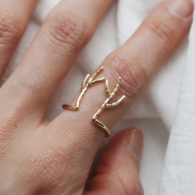 해외 패션컷에서 자주 볼 수 있는 자연적인 소재를 모티프로 한 제품으로 가지처럼 뻗어있는 사슴뿔을 반지로 제작한 제품이랍니다. 사슴뿔 사이가 오픈링으로 제작되어서 사이즈에 구애받지 않고 더욱 편안하게 착용할 수 있을 거예요. ;) 독특한 디자인이지만 가느다란 라인으로 형태를 이루고 있기 때문에 무겁다거나 손가락이 부담스럽지 않은 디자인이예요. 이 제품 하나만으로도 전체적인 룩을 스타일리쉬하게 업그레이드 시켜줄 수 있는 유니크한 매력이 돋보이는 반지로 독특한 아이템을 찾는 분들에게 추천해드려요.