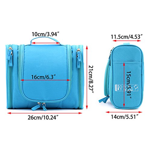- HUGE CAPACITY COMPARTMENT & MULTI POCKETS FOR STORAGE - Size is 24*21*11 cm (9.4*8.3*4.3 inches). Huge capacity offers you enough room to store two or three people's necessities. One main compartment to store your shampoo, conditioner, lotions, sunscreen, masks, perfume or anything you want to bring with you perfectly. Multiple interior mesh pockets add extra storage for your makeup such as liquid foundation, serum and moisturizer.