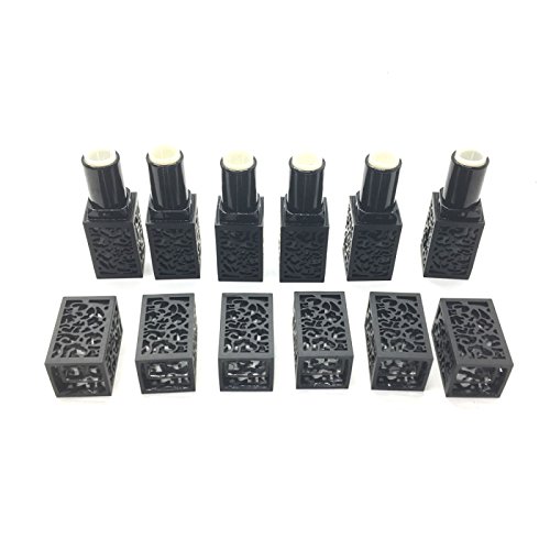 MAISHO 6PCS Hollow Out Design Black Plastic Makeup Cosmetic DIY Lipsticks Lip Balm Empty Container Square Tube Empty Lipstick Tube with Lid cap