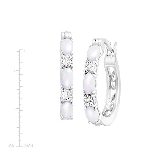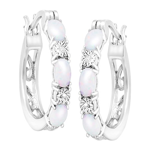 A never-fail style gets the special treatment with a smattering of radiant gemstones! Trios of oval-cut created opals totaling 1 ct are joined with diamond accents in a set of hoop earrings crafted in platinum over brass. Pieces measure 7/8 inches in diameter.