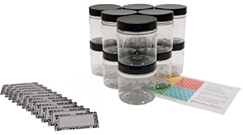 Clear 4 oz Plastic Jar with Black Lid (12 pk) with Labels - PET Round Refillable Containers