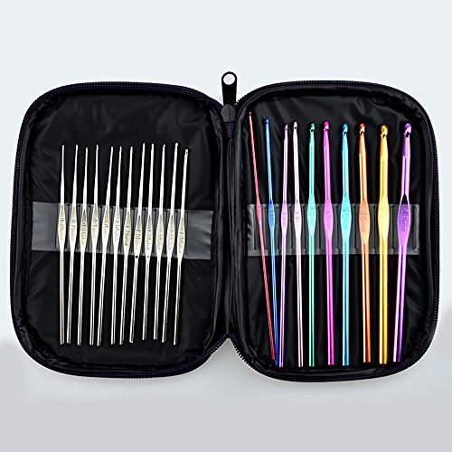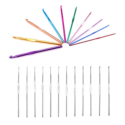 YEJI A Pack of 22 Pieces Mixed Aluminum Handle Crochet Hooks Knitting Needles for gift