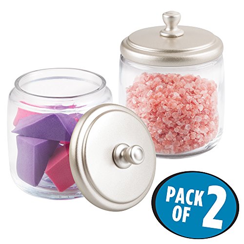 mDesign Bathroom Vanity Glass Canister Jar for Cotton Balls, Swabs, Cosmetic Pads - Pack of 2, Clear/Satin