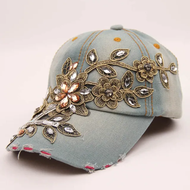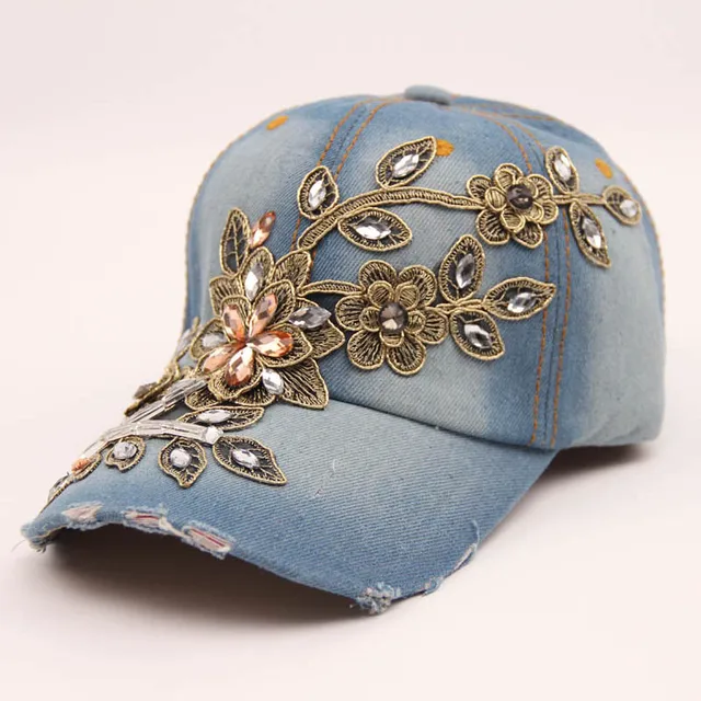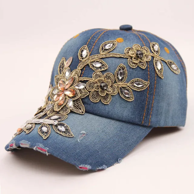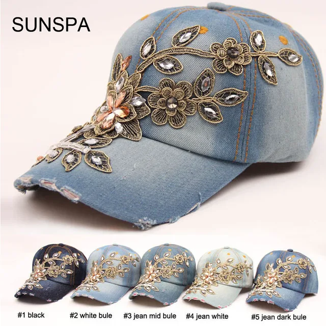 | [해외]SUNSPA 높은 품질의 새로운 패션 여성 다이아몬드 꽃 야구 모자 여성 여름 Snapbacks 모자 데님 야구 모자 태양 모자 |