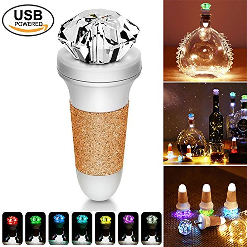 -. Title : Mystery USB Rechargeable Wine LED Bottle Lights 7 Color Changing Diamond Wine Bottle Stoppers Cork Light LED Lights for DIY Romantic Dinner Dating Party Concert Christmas Halloween