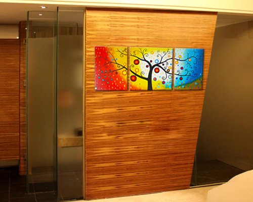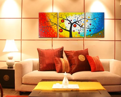 - Title : Cherish Art Hand Painted Oil Paintings Trees With Colorful Fruits 3 Panels Wood Framed Inside For Living Room Art Work Home Decoration