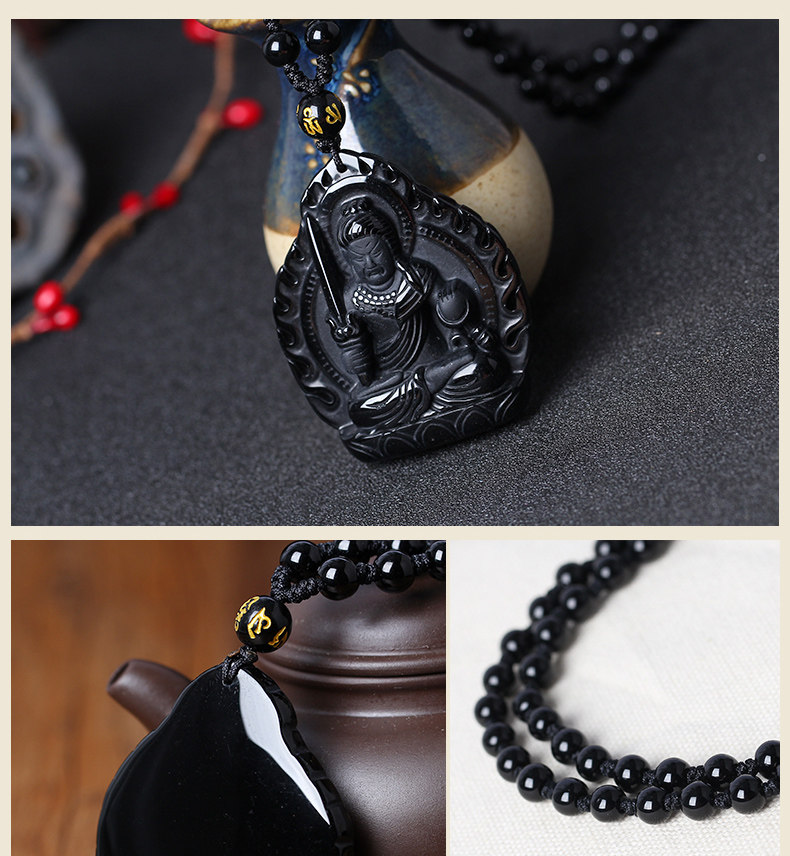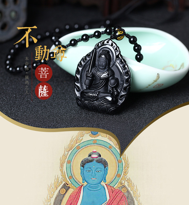 开光黑曜石曼唯肖鸡佛谛坠生肖属鸡男女式不动明王不动尊菩萨吊坠