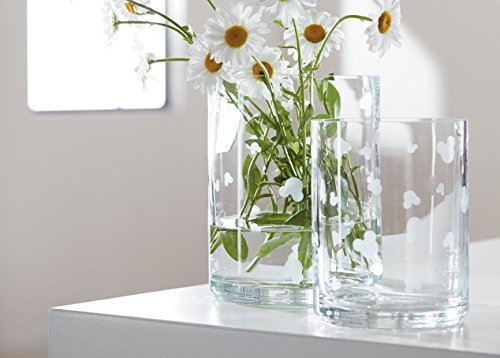 Studio : Ethan Allen Publisher : Ethan Allen Binding : Kitchen Product Description What's so fetching about these etchings? Look closer! That iconic silhouette tumbles down each vase in a cheerful cascade. Our playful, versatile Mickey Etched hurricane is mouth-blown by master glassmiths in Portugal and bound to be a hit in your hub, hallway, or anywhere you like. Super cute on its own, and beautifully balanced in a trio of one large and two smalls. 0