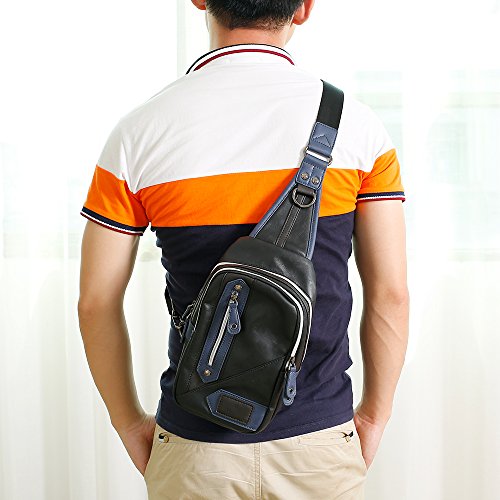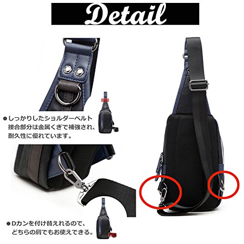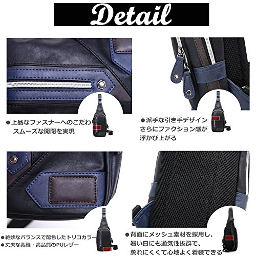 -. Feature : ★<洗練されたイメージを与える> 色仕樣:ブラック、ダークブルー2色。派手な印象のトリコカラーで、絶妙なバランスで配色した落ち着いた色味。 / ★<高品質レザー>サイズは15*8*27cm、重さは380gで、大容量で軽量のボディバッグ。生地は丈夫なPUレザー材質で作られ、撥水性と耐久性に優れて長くご利用いただけます。 / ★<通気性良い設計>バッグの裏側にメッシュ素材を採用しており、夏なのに蒸れにくく、快適で心地良い着装いただきます。 / ★<大活躍>どんなコーデにも合わせやすく、登山・バイク・旅行などの休日ファクションや通勤、通学にもピッタリなデザインに! / ★<収納力抜群>6つのポケットがあり(外側3/内側3)、長財布・pad・手帳・ノート・折り畳み傘や、ティシュー、タバコ、携帯などの小物を整理整頓して収納できます。