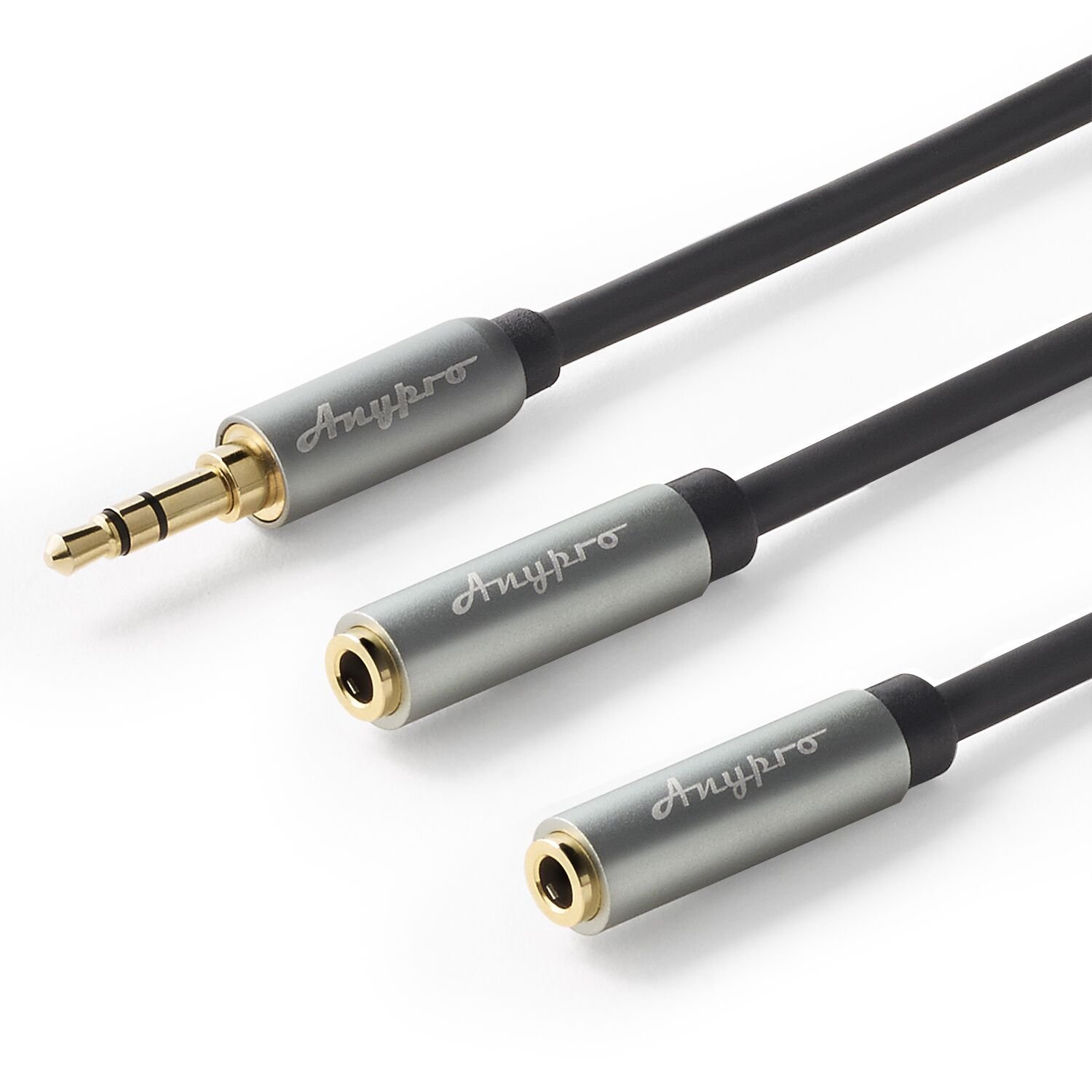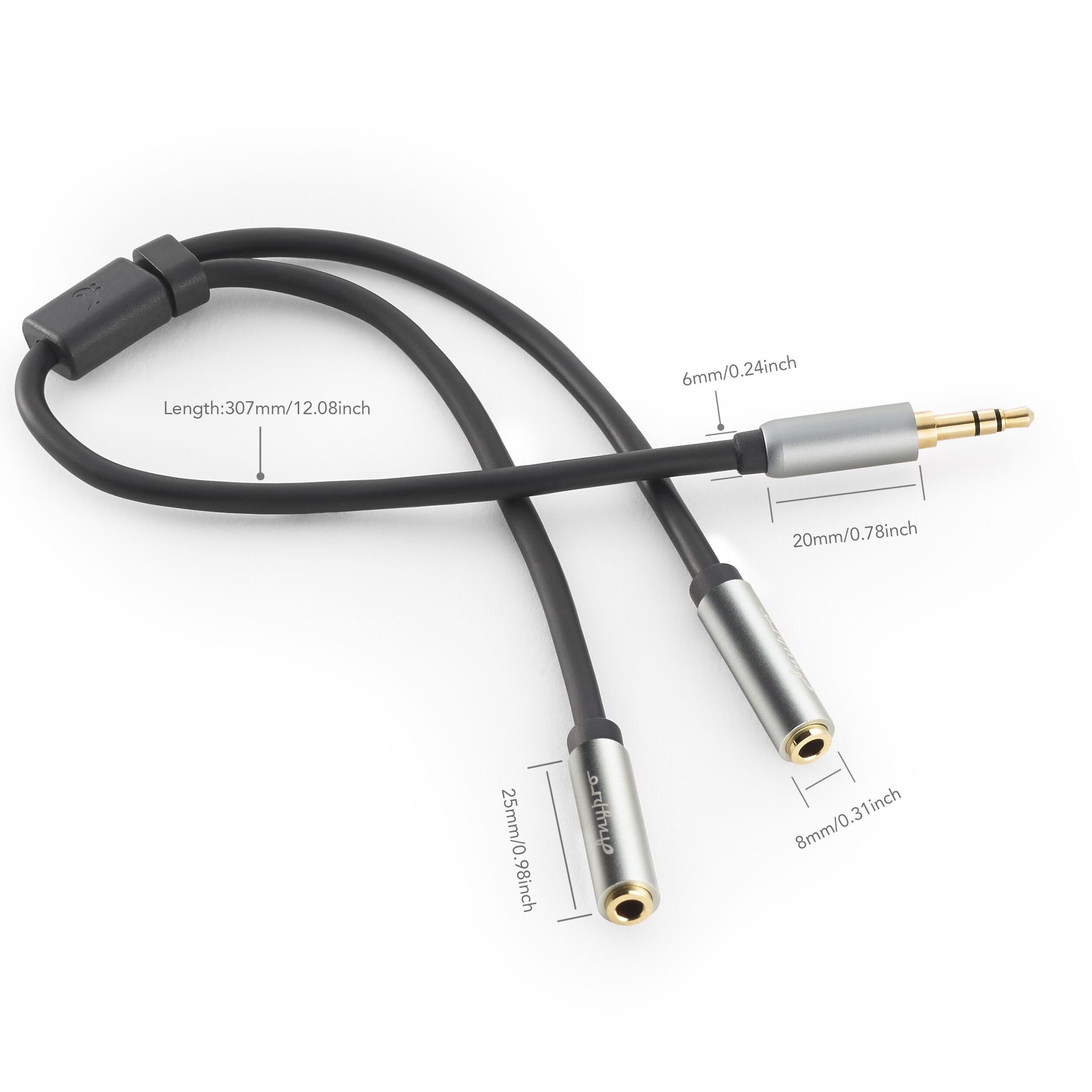 3.5mm auxiliary stereo audio splitter cable with gold-plated plug