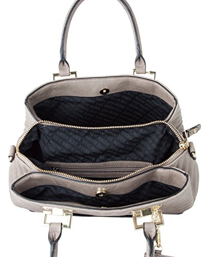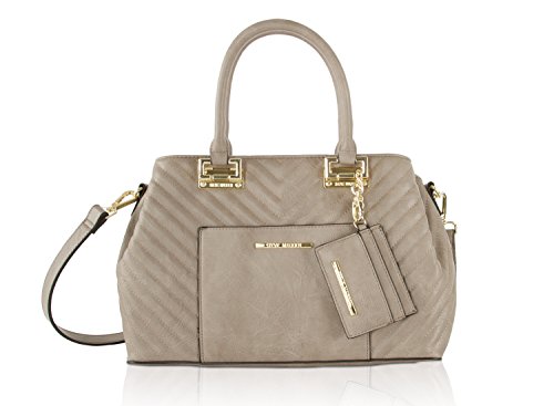 Product Description Walk the town in style when you take the Chic and classic Steve Madden Belisa 2 tote along, Features a faux leather exterior, front slip pocket, triple compartment interior, main sipper pocket with 2 media pockets and wall zip, additional side magnetic snap pockets, double handles with 5 drop and detachable cross body, hanging credit card and mirror purse key chain. This great handbag is roomy, fashionable and the perfect addition to your purse collection! 0