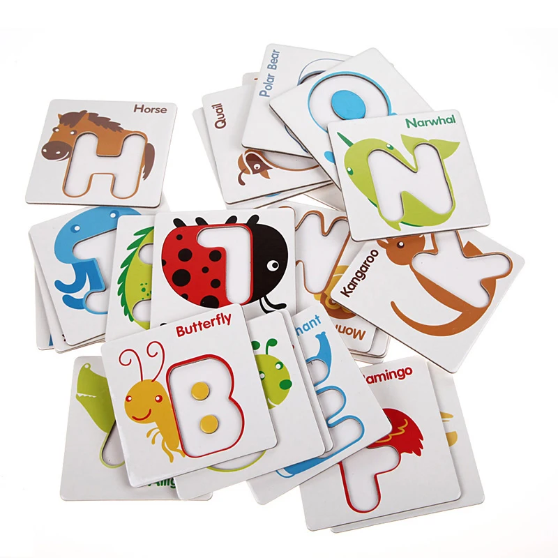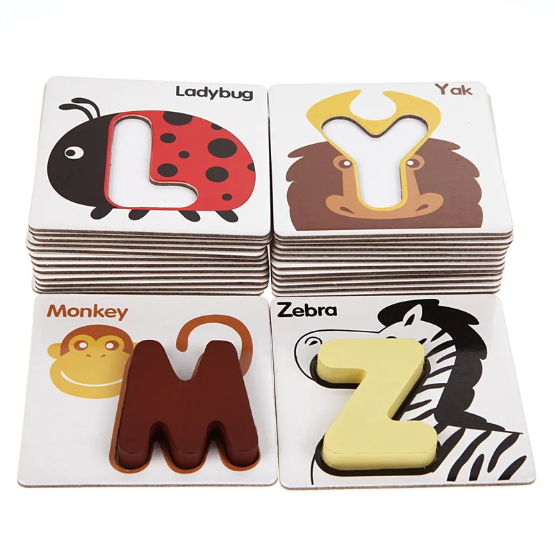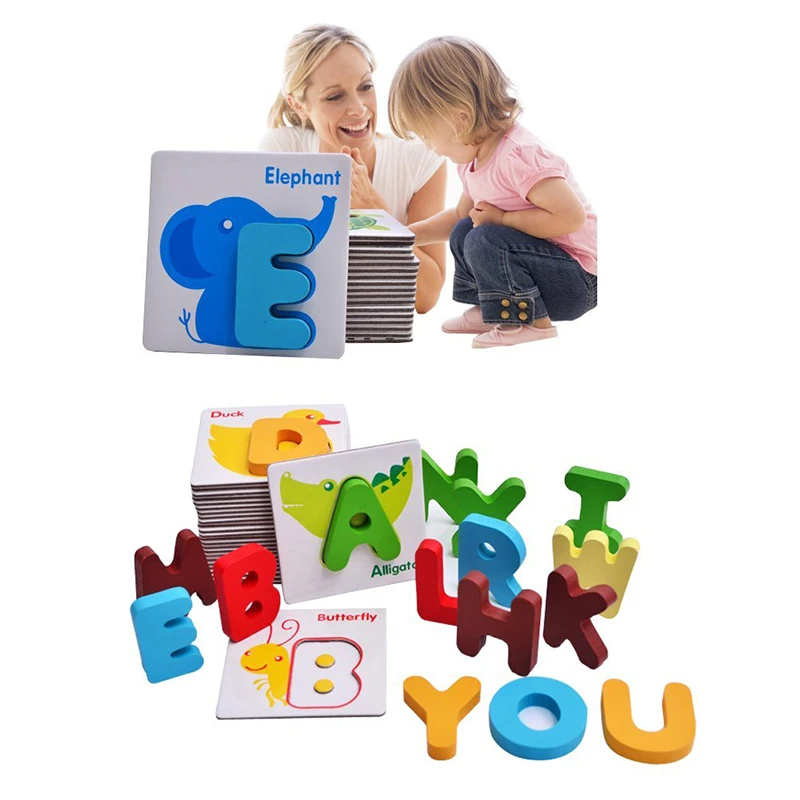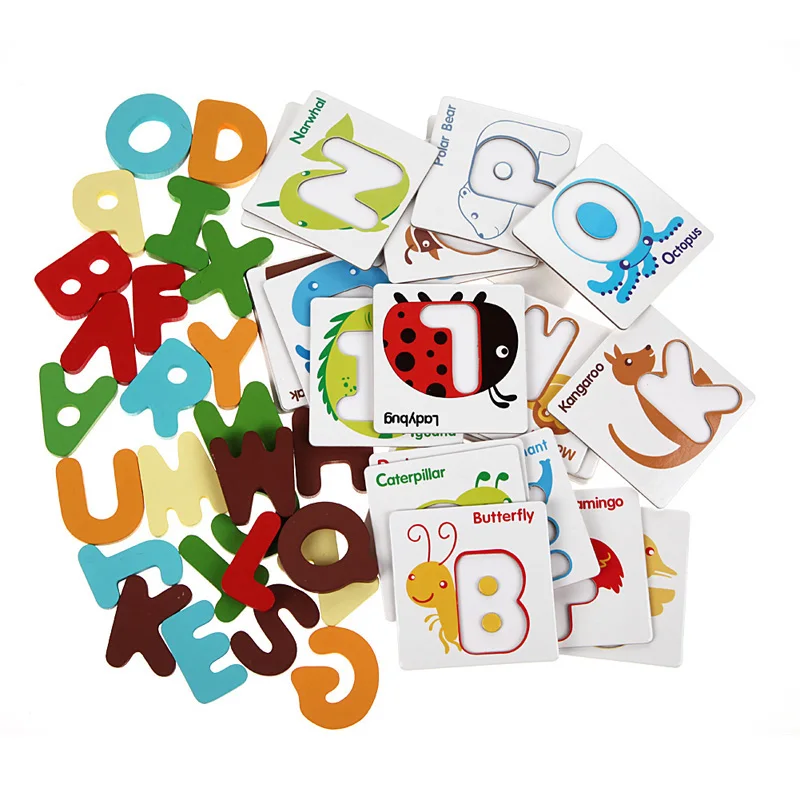 26pcs Wooden Toys Children Early Learning Toys Puzzle Toys Letter Cards Patchwork Cognitive Cards Baby Wooden Toys ingbabyu0026nbsp;WJ1307u0026nbsp;