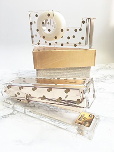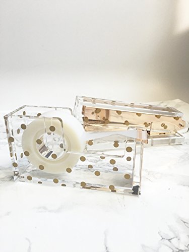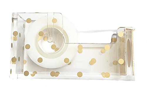 Acrylic Tape Dispenser | Gold Polka Dot - Chic, Modern Desk and Office Supplies (Tape Dispenser)