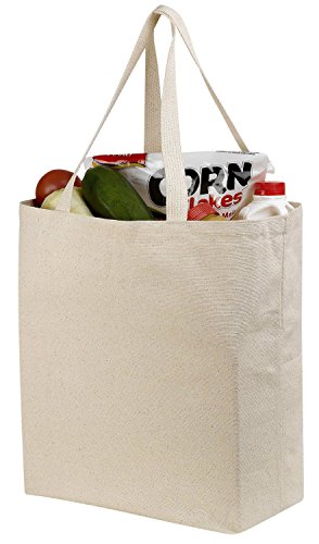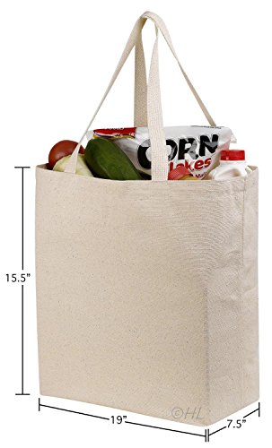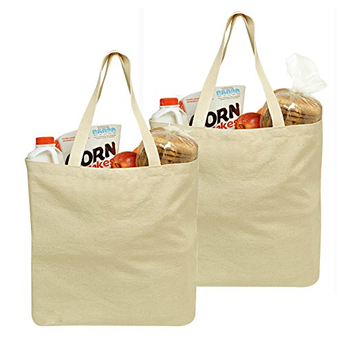 Reusable Grocery Canvas Bag, 2 PACK, 19" x 15" - Durable with double stitch, two sturdy shoulder straps to handle heavy groceries. Canvas tote grocery bags make a great solution for grocery shopping.