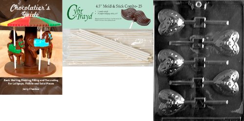 Cybrtrayd 'Heart Pop with Cherub' Valentine Chocolate Candy Mold with 25 4.5-Inch Lollipop Sticks and Chocolatier's Guide