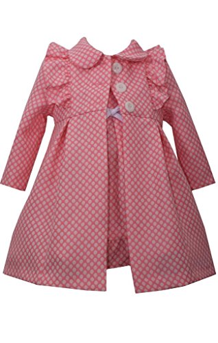 -. Binding : Apparel -. Brand : Bonnie Jean -. Color : Pink -. Department : baby-girls -. Feature : Bonnie Jean / Coat and Dress Set / Dot Jacqard P.R.Int with Ruffled Sleeve and Peter Pan Collar / Coral and White Colors / Machine Washable;Cold Water & Line Dry -. Model : 8958 -. ProductGroup : Apparel -. ProductTypeName : DRESS -. Title : Bonnie Jean Girls Dot Jacquard Ruffle Coat Set, Coral