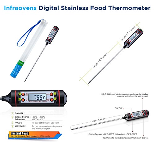 Shred, carve, pull, lift and serve large and small portions of meat like a professional. - Infraovens™ Digital Stainless Food Thermometer