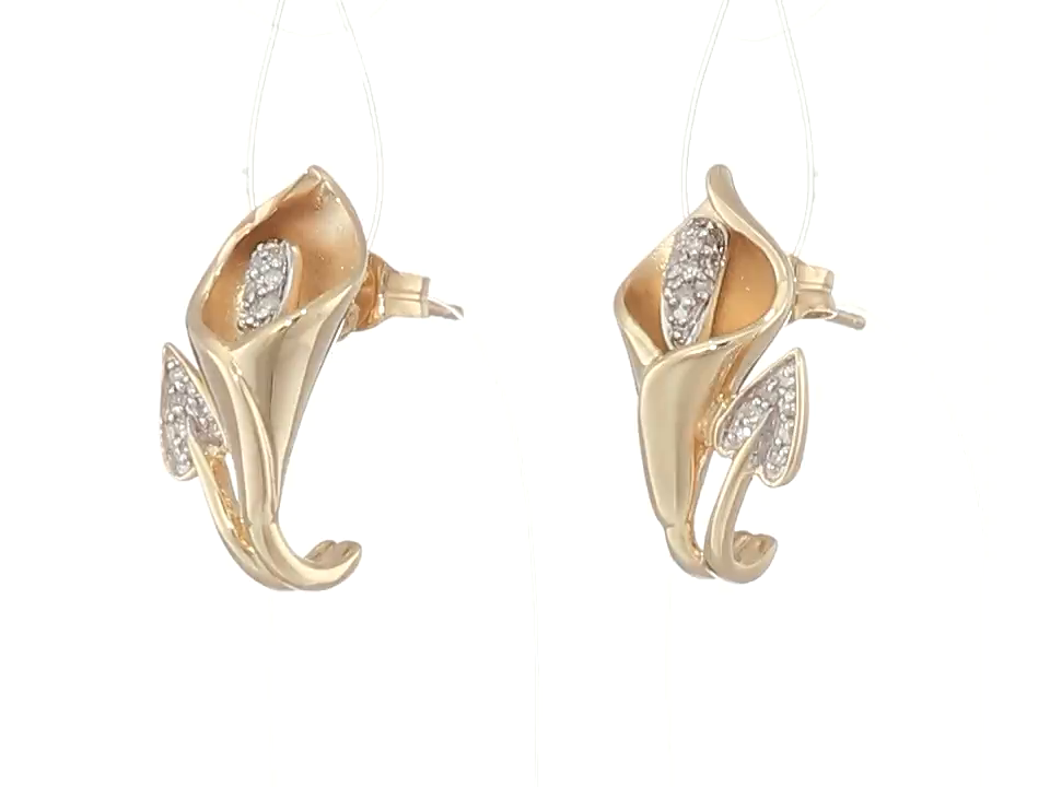 10K Gold Calla Lily Diamond Earrings (1/10 cttw, I-J Color, I2-I3 Clarity)