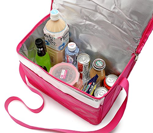 Hippih Aluminum Foil Insulated Cooler Lunch Box - Waterproof & Keep Warm Lunch Bag for Men, Women and Kids (Pink Tote)