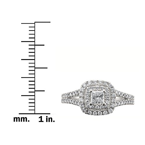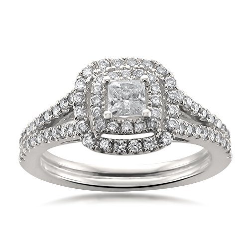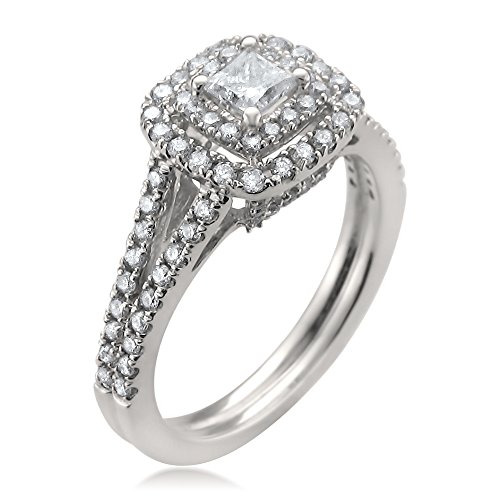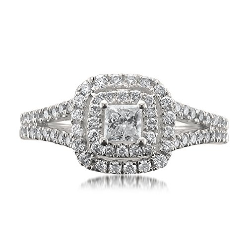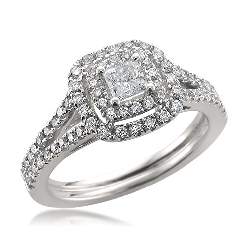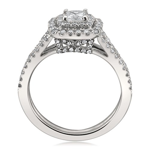 -. Title : 14k White Gold IGI Certified P.R.Incess-cut & Round Diamond Halo Engagement Wedding Ring (1 cttw, H-I, I1)