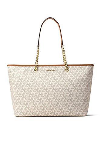 -. Brand : MICHAEL Michael Kors -. Department : womens -. Feature : MK Signature Coated Twill with Gold-tone Hardware / Measures 18.5 x 11.25 x 5.5"; 10.25" handle drop / Interior: one zip pocket, eight slip pockets and a key clip / Triple compartment design with one zip compartment and two open compartments / Top zip closure with 100% Polyester Lining -. ProductGroup : Shoes -. ProductTypeName : HANDBAG -. Title : MICHAEL Michael Kors Signature Jet Set Travel Medium Multifunction Tote