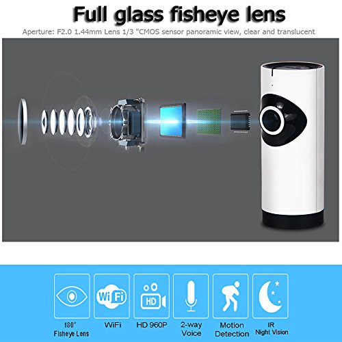 Aimcor Fisheye Wireless Ip Camera Video Security Home Surveillance Hd 960p 1.3 Megapixel Lens 30 Feet Night Vision Infrared Real Time Baby Elders Pets Monitoring with Two Way Audio Communication