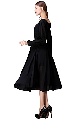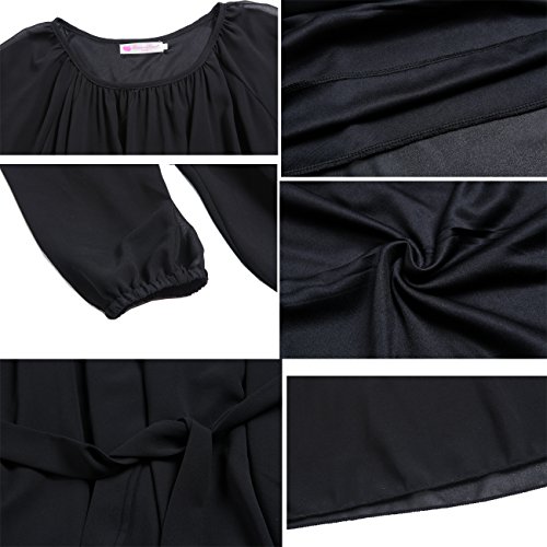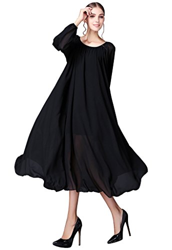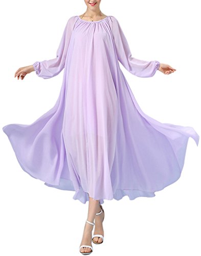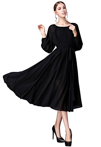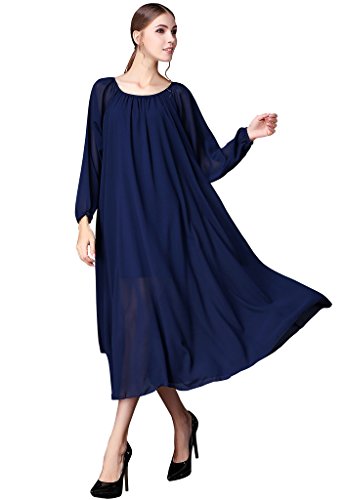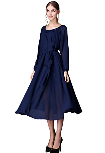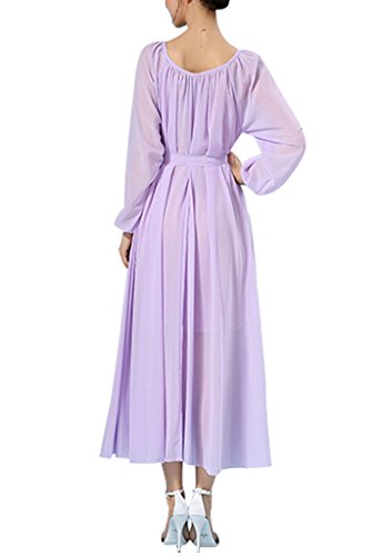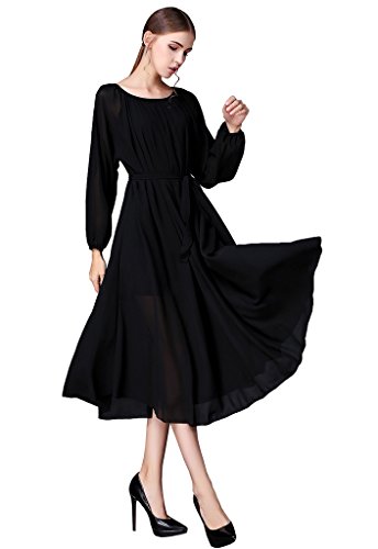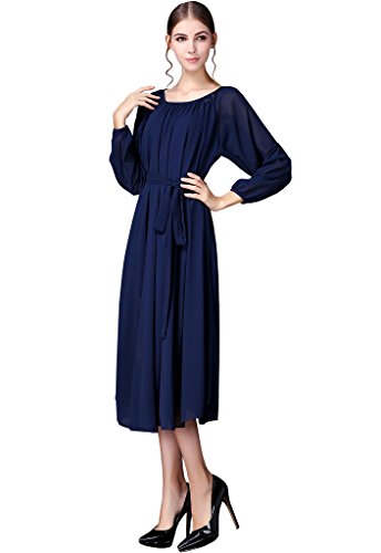 -. Title : Buenos Ninos Women's Long Sleeve Crew Neck Loose Chiffon Long Maxi Dress with Belt