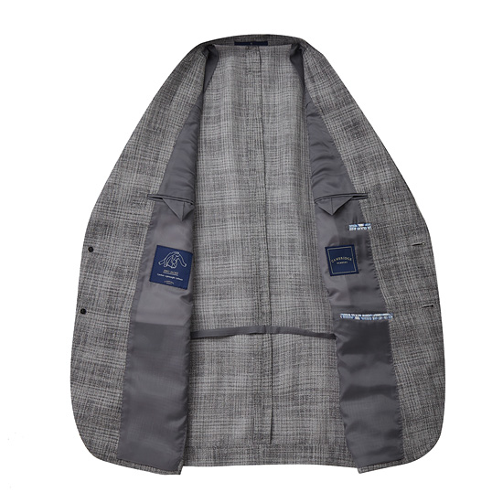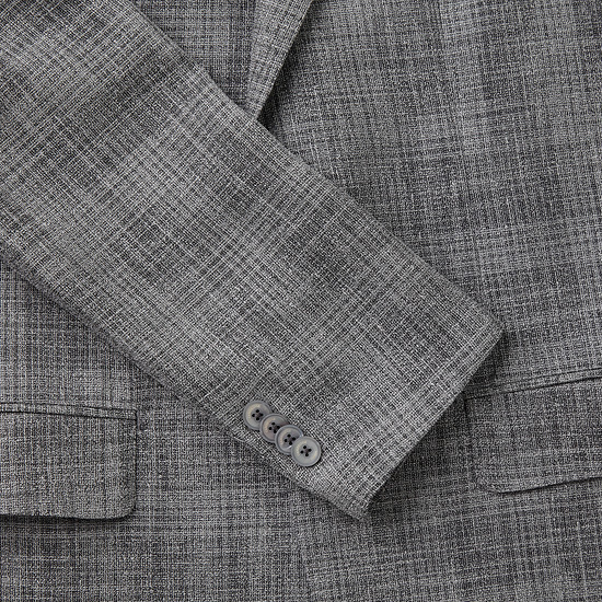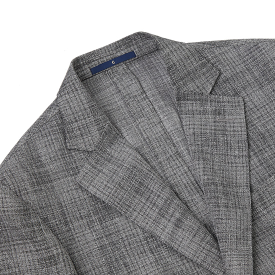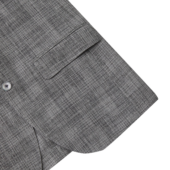 - 그레이 톤의 믹스 원사 체크로 균일하게 짜여진 남성 자켓.