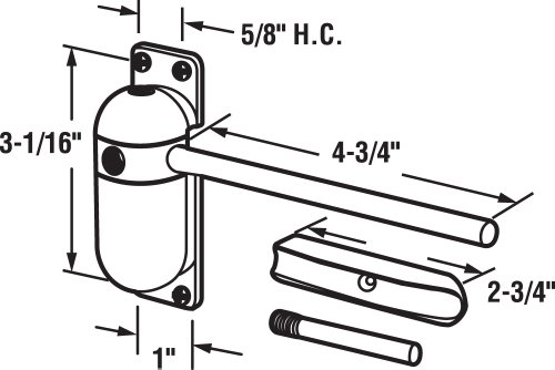 This closer features a non-handed design with adjustable closing tension. Easily mounts to the surface and can operate up to a 56 lb. load. Comes in a white finish. U.L listed; half hour fire rated.
