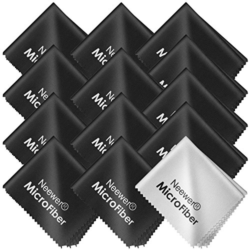 13 Pack Premium Microfiber Cleaning Cloth for DSLR Camera Lens iPhone Glasses Cell Phones Tablets Laptops TV LCD (12 Black, 1 Grey)