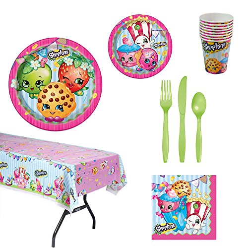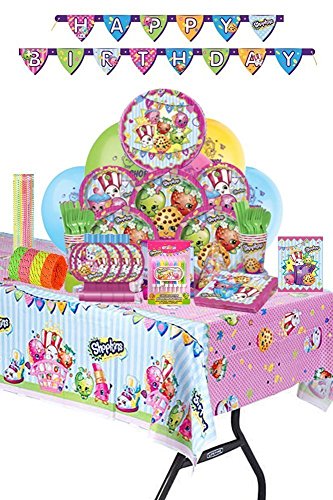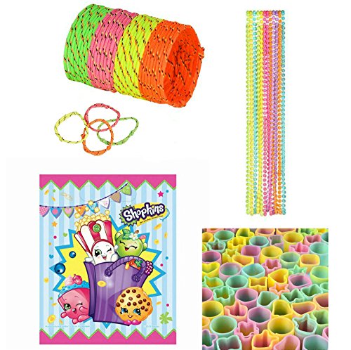 Studio : URIN Publisher : URIN Binding : Health and Beauty Product Description All Inclusive Party Pack for your Little Shopkins Every Birthday Need! Celebrate her Birthday with this Shopkins Ultimate Birthday Party Supplies Decoration Bundle 8 Guest - 168 Pieces Deluxe Tableware Pack Includes: 16 - Luncheon Napkins 8 - 7" Plates 8 - 9" Plates 8 - 9oz Paper Cups 1 - 84"x 54" Plastic Table Cover 8 - Knives 8 - Spoons 8 - Forks Decoration Kit Includes: 1 - Large Jointed Birthday Banner 1 - Cake Decoration 8 - Colorful Candles 2 - 6" Mini Honeycomb Decorations 4 - Hanging Swirls 1 - Flag Banner 8 - 12" Printed Balloons 1 - 18" Foil Balloon Goody Bag Sets Include: 8 - Loot Bags 8 - Party Hats 8 - Blowouts 12 - Pastel Beaded Necklaces 8 - Rainbow 1.5" Mini Slinky 32 - Friendship Bracelets: 8 - Yellow 8 - Orange 8 - Green 8 - Pink Supplies Specially Packed in a Strawberry Pink Cake Box that Measures: 10"(L) x 10"(W) x 4"(H) Each Party Girl Receives a Party Hat and Loot Bag that Includes: 1 - Blowout 1 - Rainbow 2.5" Slinky 1 - Pastel Beaded Necklace 4 - Bracelets: 1 - Yellow 1 - Orange 1 - Green 1 - Pink 0