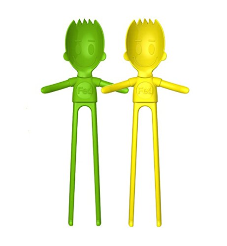 Fun Eating Devices - Sporkstix, Part Spork and Part Chopsticks - Red/Blue 2 Pack (2 Pack, Yellow and Green)