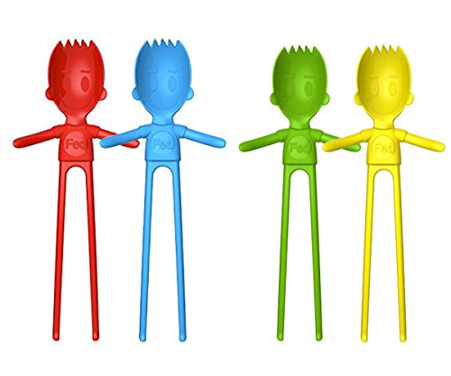 Fun Eating Devices - Sporkstix, Part Spork and Part Chopsticks - Red/Blue 2 Pack (4 Pack, Blue, Red, Green, Yellow)