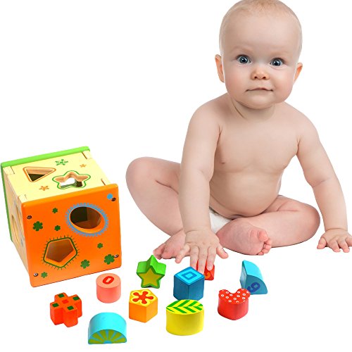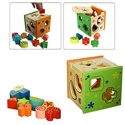 Let your baby enjoy this little piece of art with Toy Cubby Toddler Baby Natural Wooden Shape and Number Sorter Cube Non Toxic Paint. Promotes color and shape recognition and solving skill in fun way. Sorter Cube measures 6 x 6 inches and comes with vibrant colors. Sorter features shapes with number and adorable design. Help them learn numbers and shapes in early age. Safe and durable, a worry-free shape sorter made from natural woods painted with non toxic paint for long lasting entertainment for your baby. Match it in their designated holes. Ideal gift for ages 1 - 5 years old.
