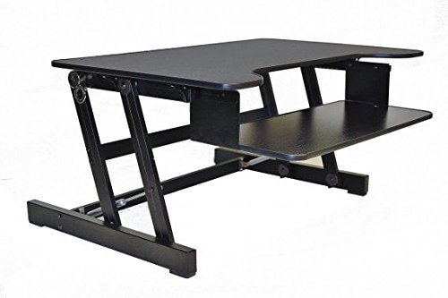 ERGONOMIC KEYBOARD TRAY: Staggered height between keyboard and monitor keeps monitor at proper height to prevent neck strain without manual adjustments sitting or standing. No need for a separate monitor riser