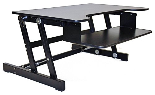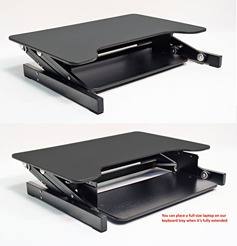 EASY HEIGHT ADJUSTMENTS: Sit or stand in comfort with smooth height adjustment up to 16.3" above your desk surface with 4 incremental height options.Desk footprint 30" wide x 21.5" deep.Keyboard tray is 24" wide x 11.5" deep