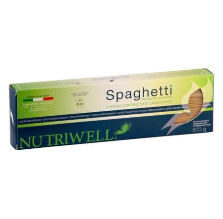 -. Feature : Thought pasta would be a strict no, no on a low carb diet? THINK AGAIN... / You will pleased to learn that Nutriwell high protein spahaghetti pasta is made with 50% less carbs, allowing you to lose weight adE.q.u.a.t.ely and efficiently without sacrificing any of the taste or texture of our traditional plain pasta. / The great thing about Italy's low carb, high protein Nutriwell spaghetti pasta, is that not only are they great for losing weight, they're also great for people with certain health issues, Diabetics in particular. / 17g protein per serving - Amazing! / 17g net carb, high fiber and guilt free!
